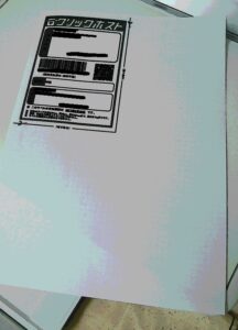 以前はラベル以外の部分には説明書きなどが印字され、用紙のムダと言われましたが、最近はラベルのみ印字になり他は白紙になりました。