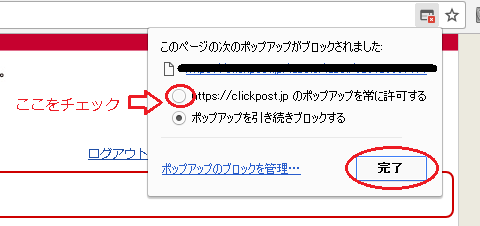 「clickpost.jp」のポップアップを許可する設定をしてください。