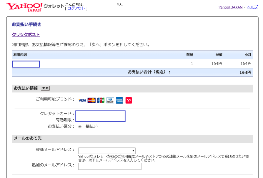 クリックポストの運賃は、Yahoo!ウォレットによりお支払いいただきます。