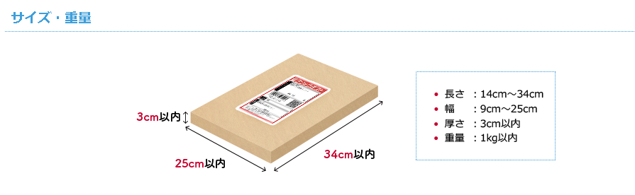 サイズ:横25cm以内・縦34cm以内・厚さ3cm以内