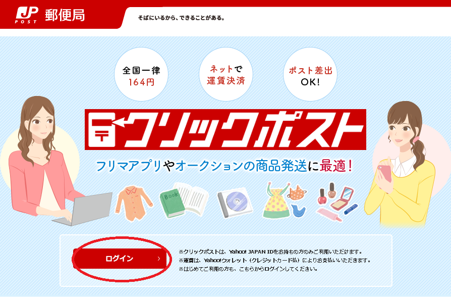 クリックポストWebサイトには、Yahoo! JAPAN IDでログインしていただきます。