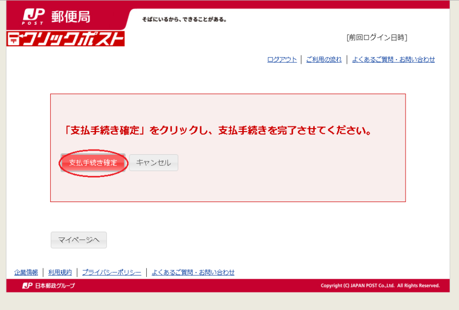 運賃の決済処理(課金処理)は、郵便局で引受処理をした時点で行います。