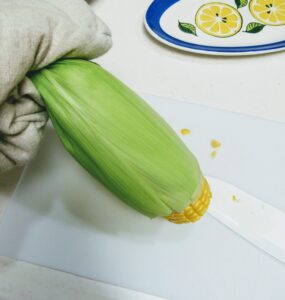 電子レンジを使ったとうもろこしのゆで方の紹介です。